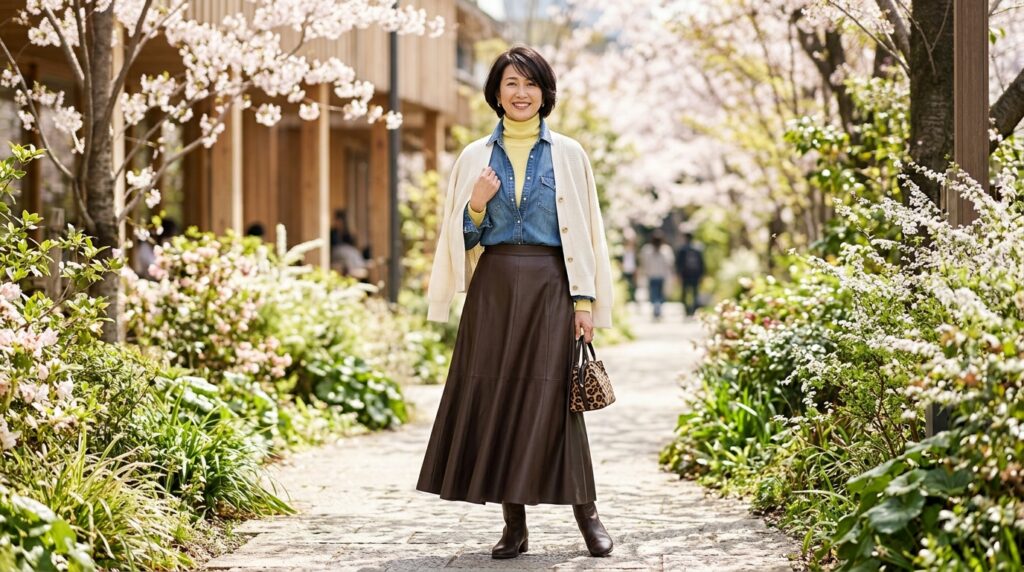 エコレザースカートで50代の春コーデが変わる!きれいめ着こなし術